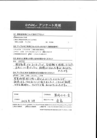 お車のご相談・ 査定だけでもOK! カンタン 入力 30秒 アップルがブランド買取始めました! お電話でも受付中! 受付時間10:00 ~ 18:30 0120-556-522 お車のご相談・ 査定だけでもOK! カンタン 入力 30秒 アップルがブランド買取始めました! お電話でも受付中! 受付時間10:00 ~ 18:30 0120-556-522 アップルがブランド買取始めました! お電話でも受付中! 受付時間10:00 ~ 18:30 0120-556-522 店舗情報 在庫車 スタッフ紹介 ブログ お客様の声 キャンペーン お得 無料査定 click お客様の声 ご記入日: 2016/05/21 Y様 営業時間終了後の飛込みにもかかわらず、誠意あるご対応をしていただきました。こちらが納得できる説明と、アドバイス等ありがたかったです。 前へ 次へ お客様の声一覧を見る