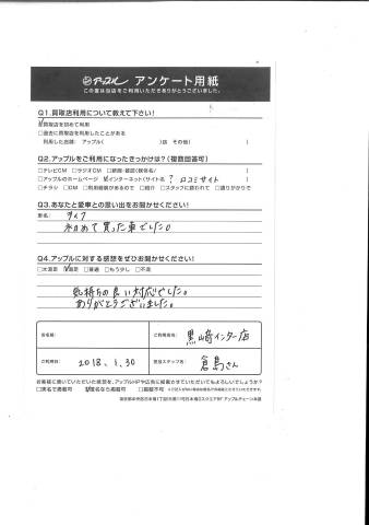 お車のご相談・ 査定だけでもOK! カンタン 入力 30秒 アップルがブランド買取始めました! お電話でも受付中! 受付時間10:00 ~ 18:30 0120-556-522 お車のご相談・ 査定だけでもOK! カンタン 入力 30秒 アップルがブランド買取始めました! お電話でも受付中! 受付時間10:00 ~ 18:30 0120-556-522 アップルがブランド買取始めました! お電話でも受付中! 受付時間10:00 ~ 18:30 0120-556-522 店舗情報 在庫車 スタッフ紹介 ブログ お客様の声 キャンペーン お得 無料査定 click お客様の声 ご記入日: 2018/04/21 K様 初めて買った車でした。気持ちの良い対応でした。ありがとうございました。 前へ 次へ お客様の声一覧を見る