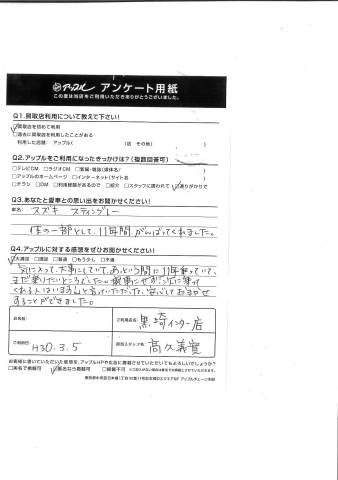 お車のご相談・ 査定だけでもOK! カンタン 入力 30秒 アップルがブランド買取始めました! お電話でも受付中! 受付時間10:00 ~ 18:30 0120-556-522 お車のご相談・ 査定だけでもOK! カンタン 入力 30秒 アップルがブランド買取始めました! お電話でも受付中! 受付時間10:00 ~ 18:30 0120-556-522 アップルがブランド買取始めました! お電話でも受付中! 受付時間10:00 ~ 18:30 0120-556-522 店舗情報 在庫車 スタッフ紹介 ブログ お客様の声 キャンペーン お得 無料査定 click お客様の声 ご記入日: 2018/07/23 T様 体の一部として、11年間がんばってくれました気に入って大事にしていて、あっという間に11年乗っていて、まだ乗りたいところでした。廃車にせず、「次にのってくれる人はいます!」 と言っていただけて安心しておまかせすることができました。 前へ 次へ お客様の声一覧を見る