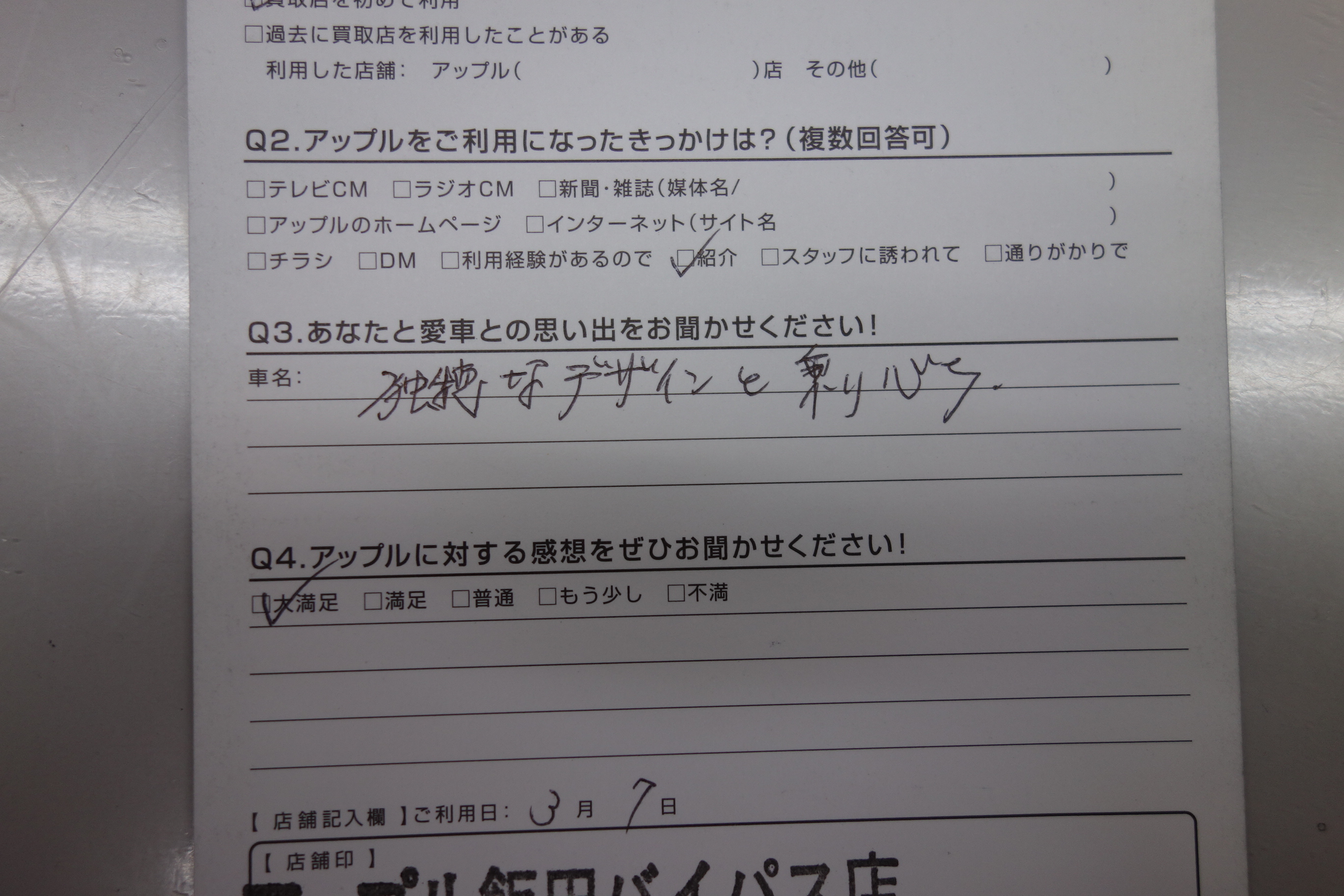 お車のご相談・ 査定だけでもOK! カンタン 入力 30秒 アップルがブランド買取始めました! お電話でも受付中! 受付時間10:00 ~ 19:00 0265-52-4040 お車のご相談・ 査定だけでもOK! カンタン 入力 30秒 アップルがブランド買取始めました! お電話でも受付中! 受付時間10:00 ~ 19:00 0265-52-4040 アップルがブランド買取始めました! お電話でも受付中! 受付時間10:00 ~ 19:00 0265-52-4040 店舗情報 在庫車 スタッフ紹介 ブログ お客様の声 キャンペーン 無料査定 click お客様の声 ご記入日: 2017/03/07 長野県飯田市 匿名希望K様 車名:フォルクスワーゲン ニュービートル 独特なデザインと乗り心地。 前へ 次へ お客様の声一覧を見る