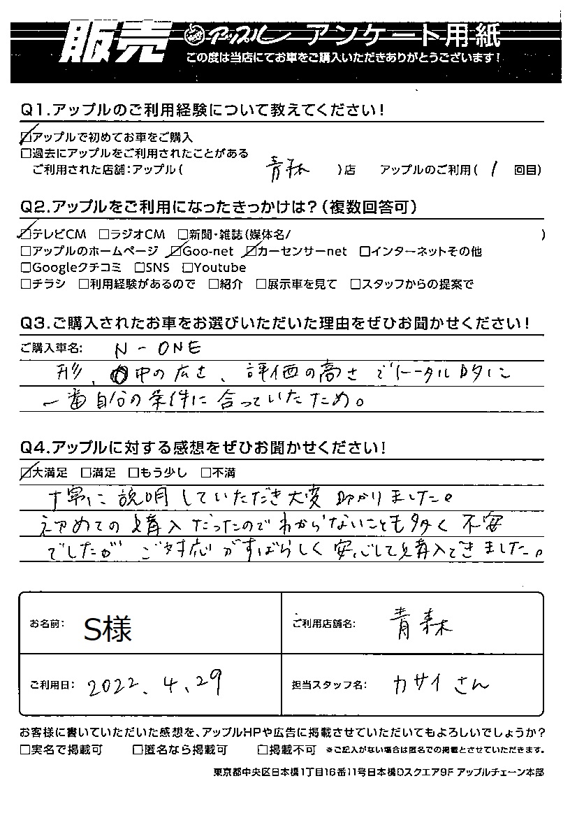 S様 車名:ホンダ N-ONE