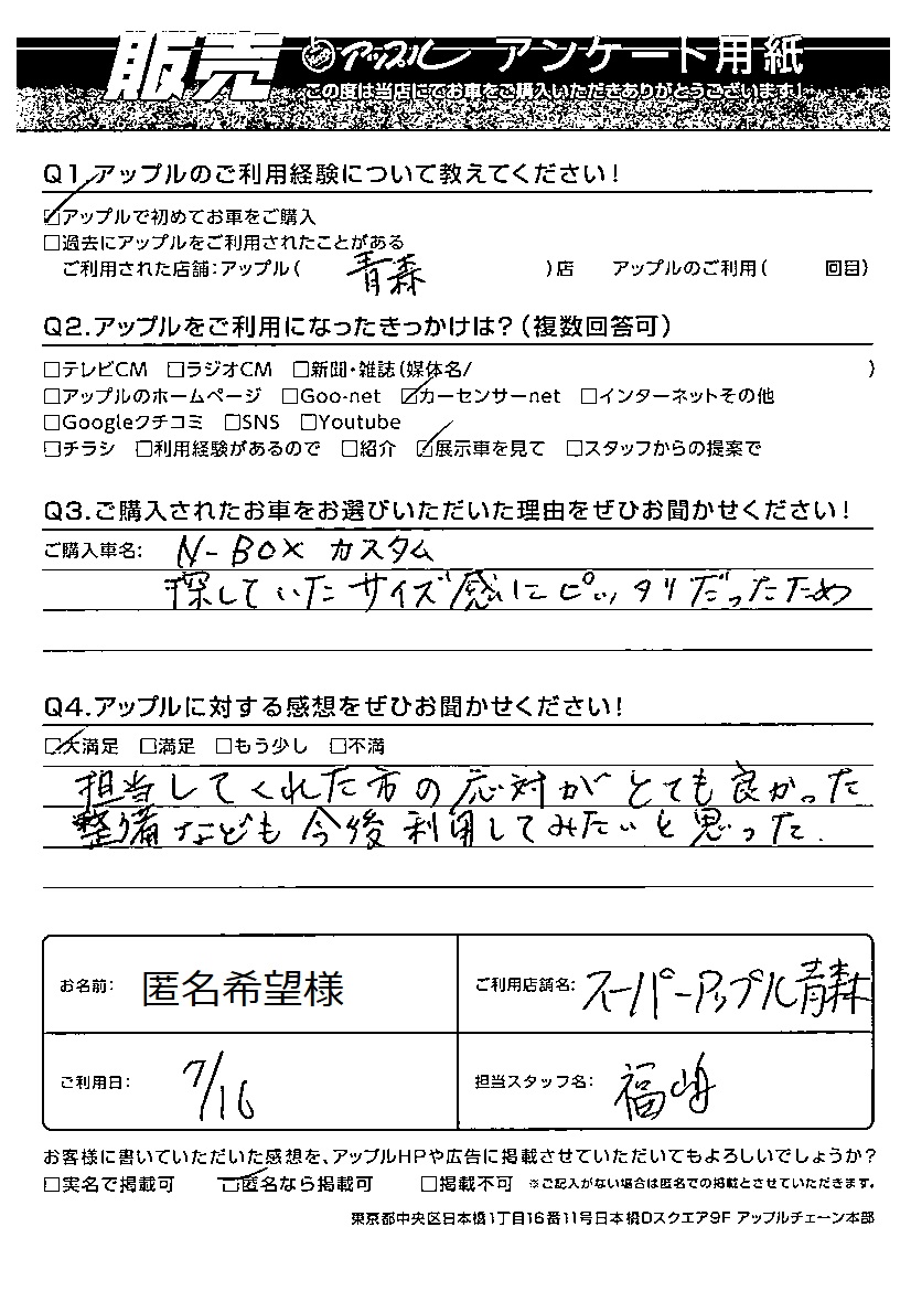 匿名希望様 車名:ホンダ N-BOX