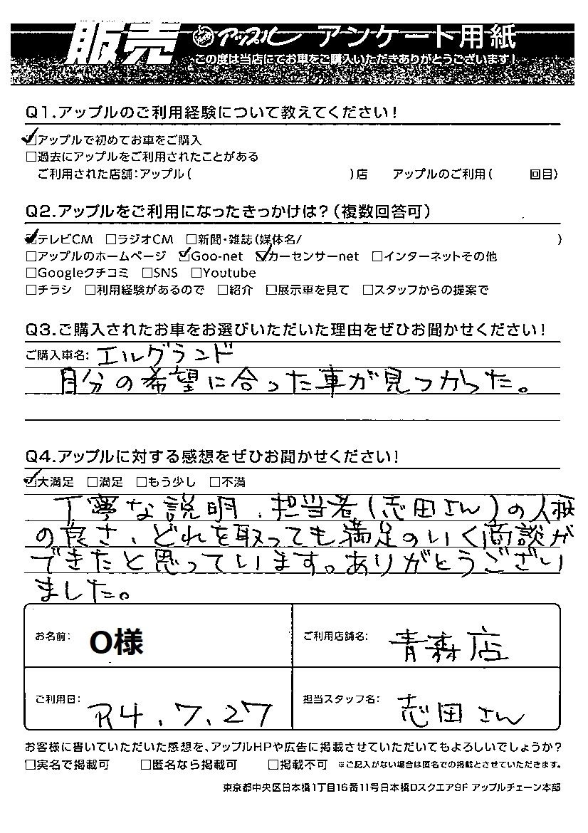 丁寧な説明、担当者(志田さん)の人柄の良さ、どれを取っても満足のいく商談ができたと思っています。