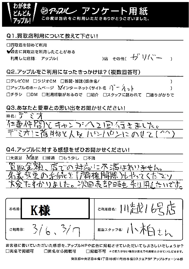 K様 車名:マツダ デミオ