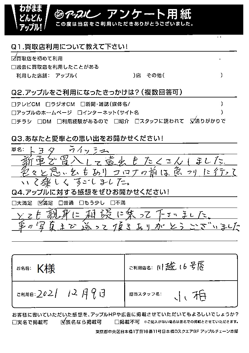 K様 車名:トヨタ ウィッシュ