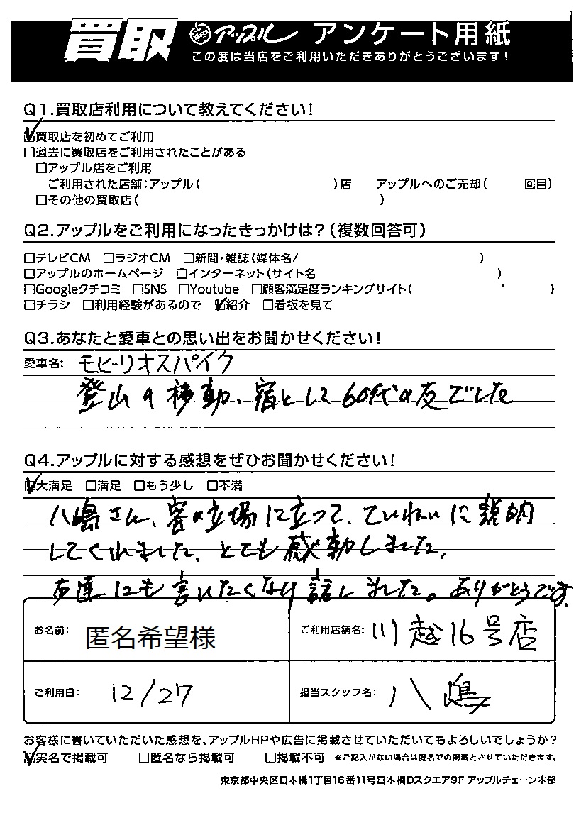 匿名希望様 車名:ホンダ モビリオスパイク