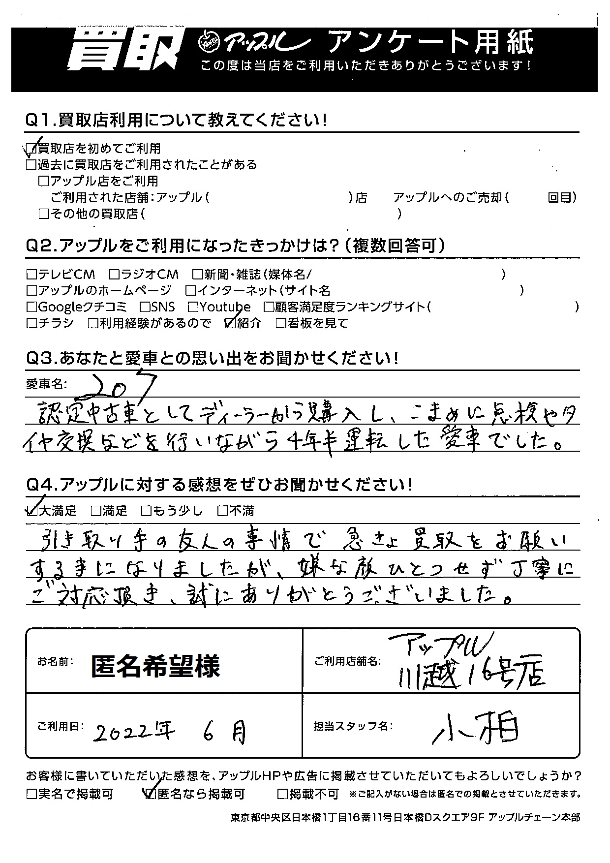 引き取り手の友人の事情で急きょ買取をお願いする事になりましたが、嫌な顔ひとつせず丁寧にご対応頂き、誠にありがとうございました。