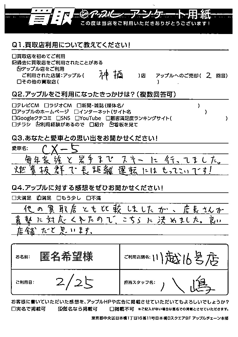 匿名希望様 車名:マツダ CX-5