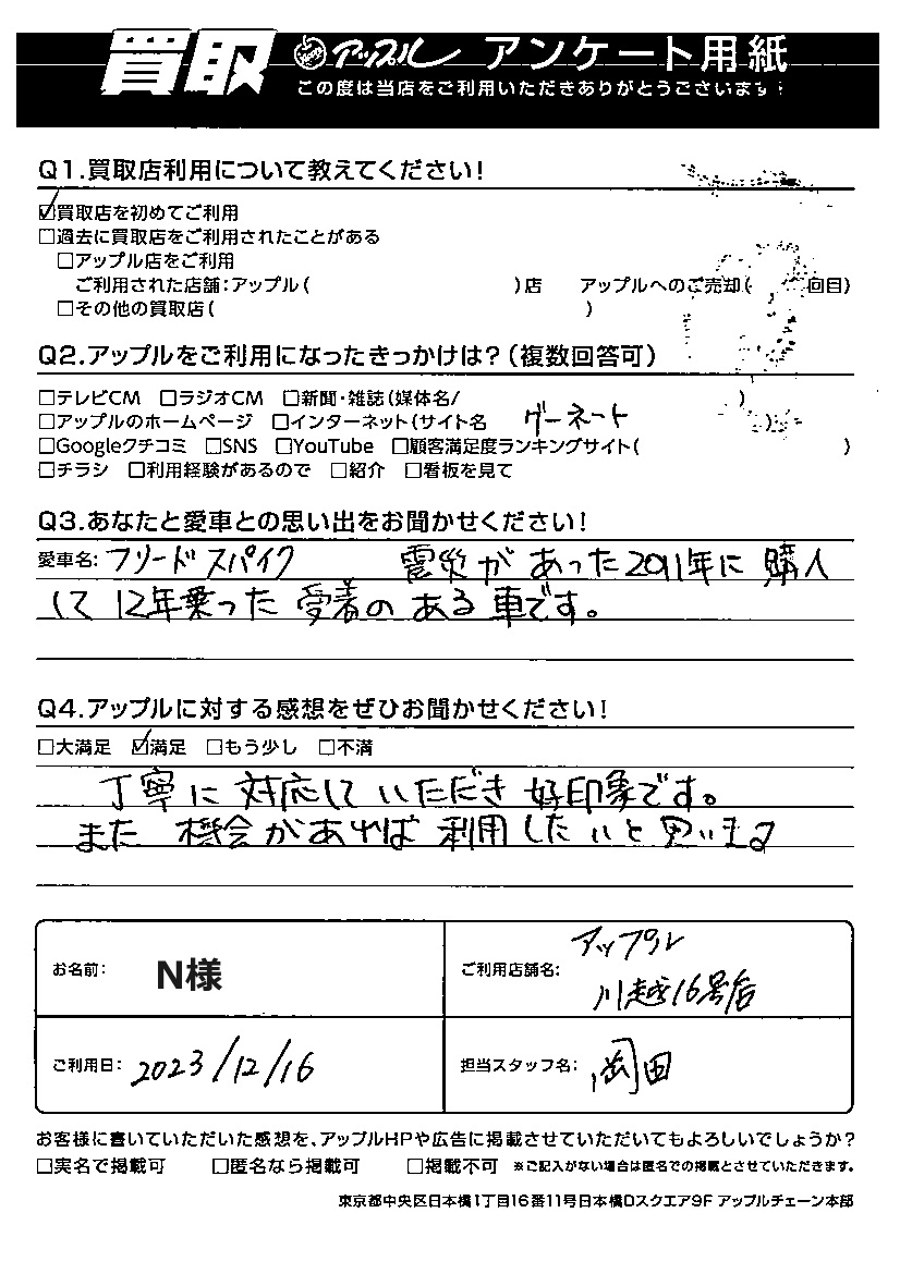 N様 車名:ホンダ フリードスパイク