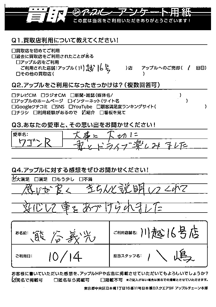感じが良く きちんと説明してくれて 安心して車をあづけられました。