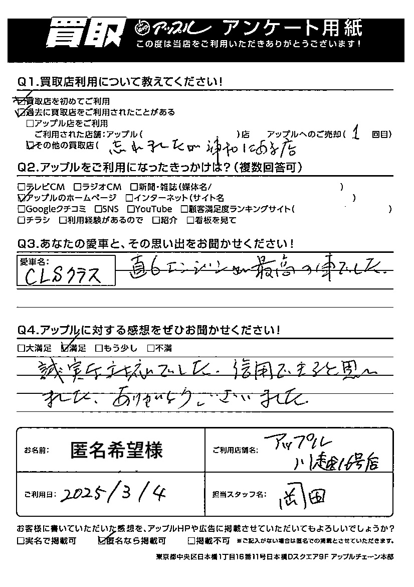 匿名希望様 車名:メルセデス・ベンツ CLSクラス