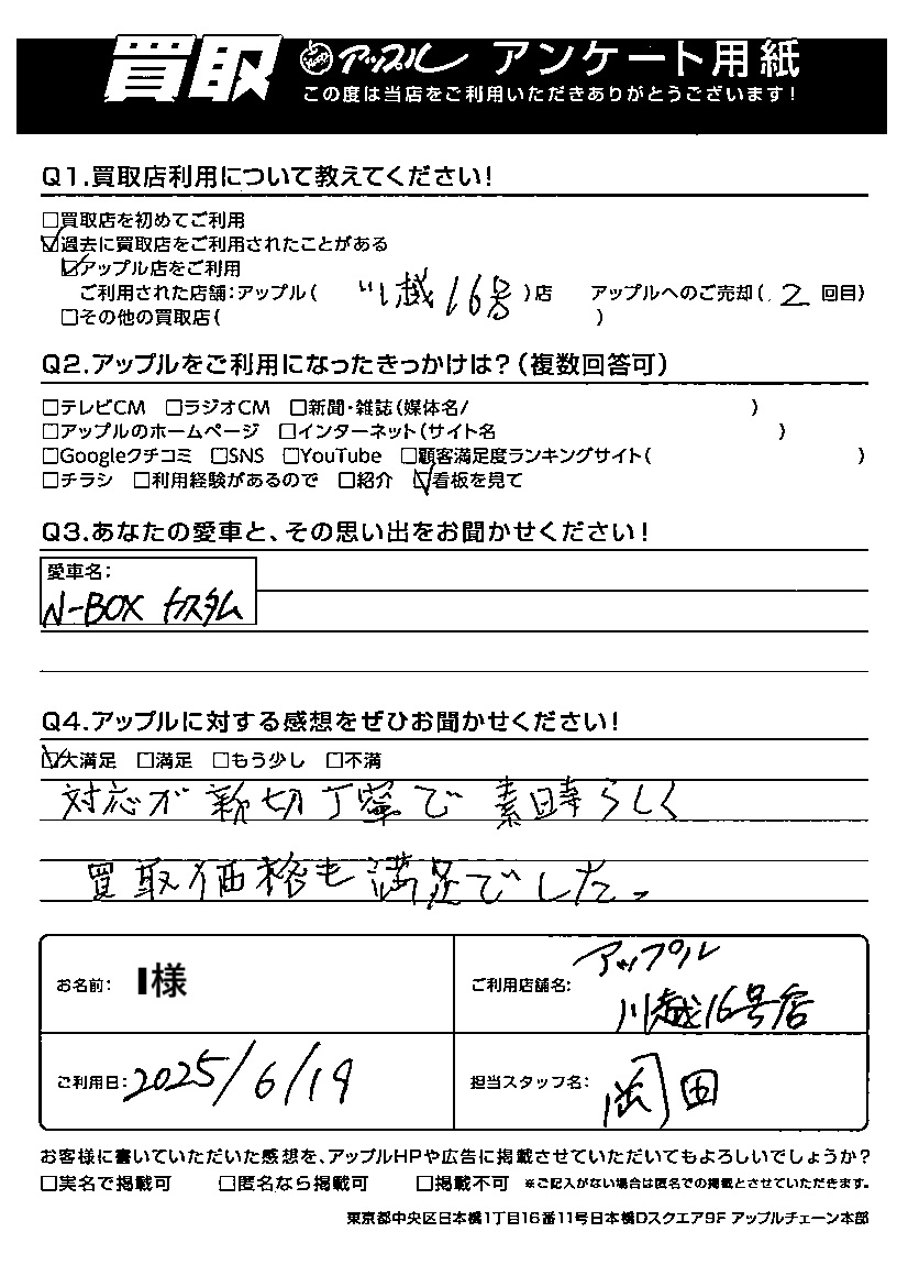 お車のご相談・ 査定だけでもOK! カンタン 入力 30秒 アップルがブランド買取始めました! お電話でも受付中! 受付時間AM10:00~PM7:00 049-244-4855 お車のご相談・ 査定だけでもOK! カンタン 入力 30秒 アップルがブランド買取始めました! お電話でも受付中! 受付時間AM10:00~PM7:00 049-244-4855 アップルがブランド買取始めました! お電話でも受付中! 受付時間AM10:00~PM7:00 049-244-4855 店舗情報 在庫車 スタッフ紹介 ブログ お客様の声 キャンペーン 無料査定 click お客様の声 ご記入日: 2025/06/19 I様 車名:ホンダ N-BOX Q:アップルに対する感想をぜひお聞かせください!大満足対応が親切丁寧で素晴らしく 買取価格も満足でした。 前へ 次へ お客様の声一覧を見る