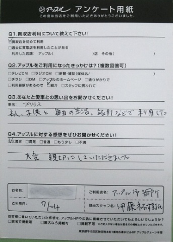 お車のご相談・ 査定だけでもOK! カンタン 入力 30秒 アップルがブランド買取始めました! お電話でも受付中! 受付時間9:30 ~ 18:30 052-735-6411 お車のご相談・ 査定だけでもOK! カンタン 入力 30秒 アップルがブランド買取始めました! お電話でも受付中! 受付時間9:30 ~ 18:30 052-735-6411 アップルがブランド買取始めました! お電話でも受付中! 受付時間9:30 ~ 18:30 052-735-6411 店舗情報 在庫車 スタッフ紹介 ブログ お客様の声 キャンペーン 無料査定 click お客様の声 ご記入日: 2016/07/24 Y・M様 ■ご利用日時■ H28年07月24日■車種■ プリウス■担当者■ 伊藤【アップルに対する感想をぜひお書きください】満足度★★★★★大変 親切にしていただきました。 前へ 次へ お客様の声一覧を見る