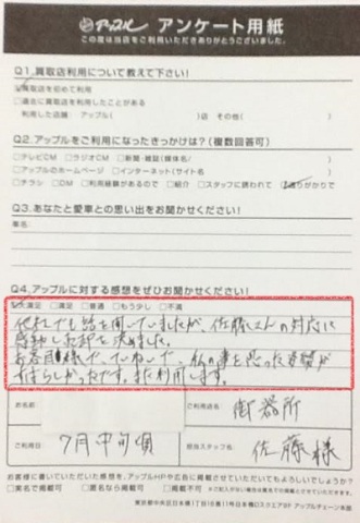 他社でも話を聞いていましたが、佐藤さんの対応に感動し売却を決めました。