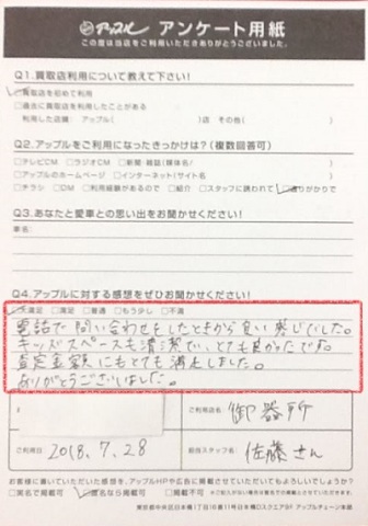 査定金額にもとても満足しました。ありがとうございました。