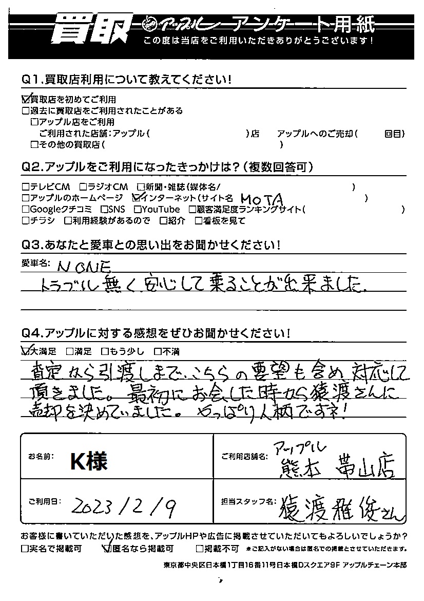 K 様 担当:【猿渡】