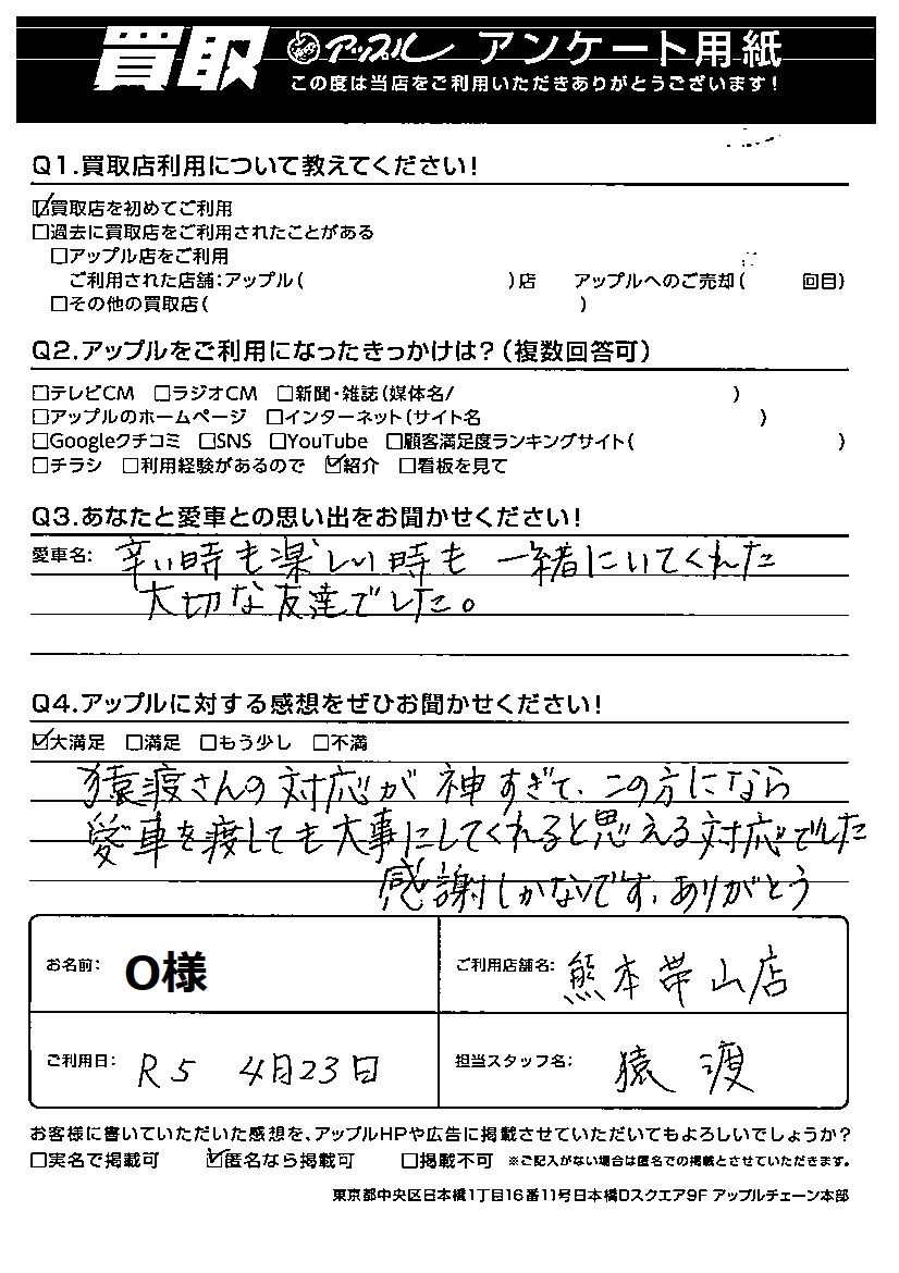 O 様 担当:【猿渡】
