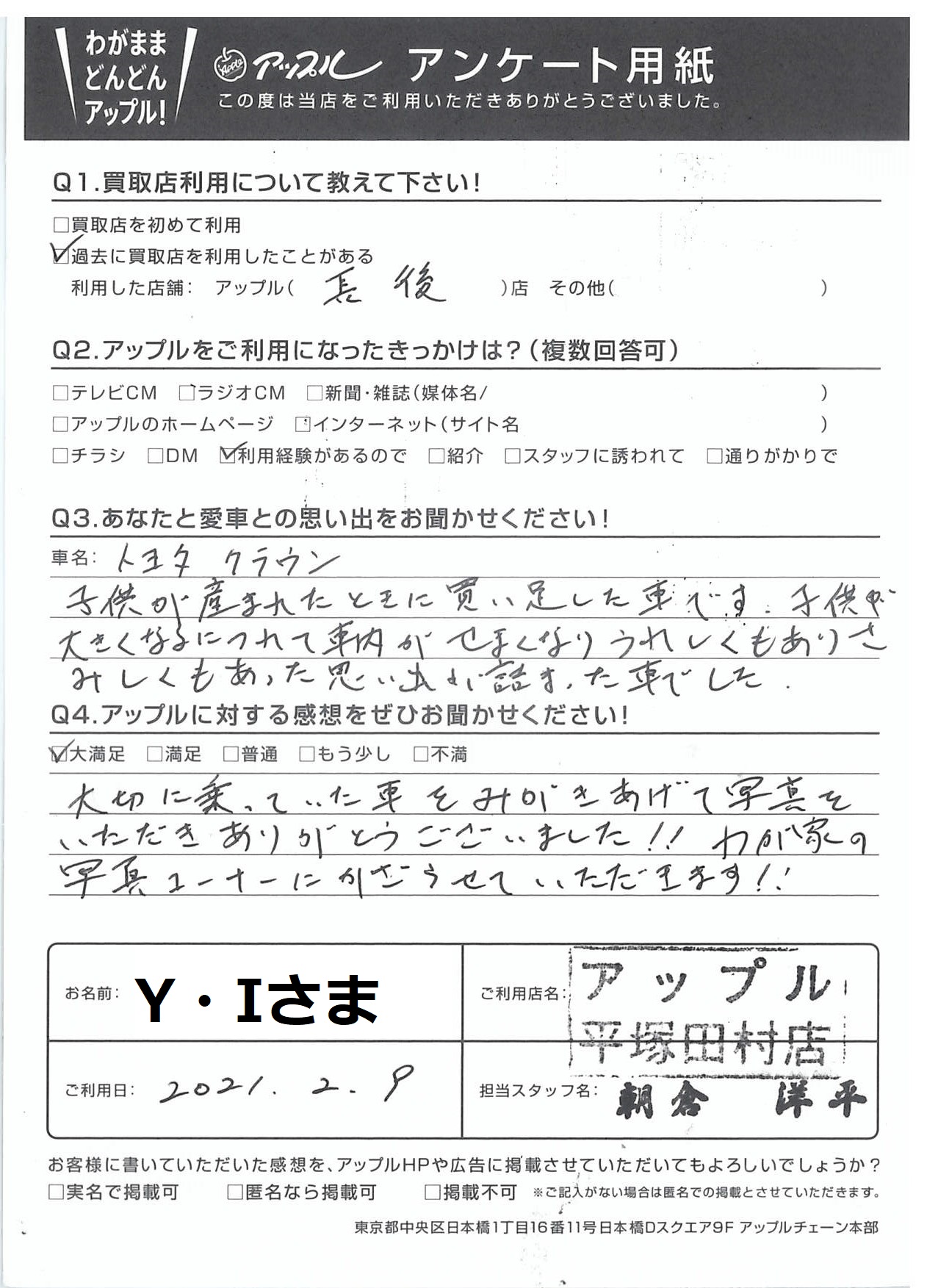 Y・I様 車名:トヨタ クラウンセダン