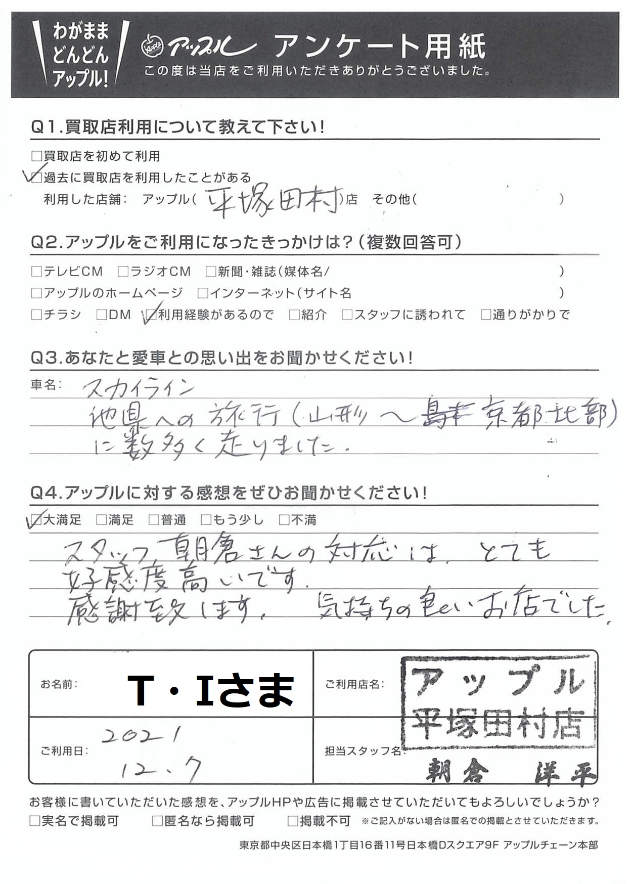 スタッフ、朝倉さんの対応はとても好感度髙いです。