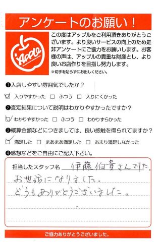 お車のご相談・ 査定だけでもOK! カンタン 入力 30秒 アップルがブランド買取始めました! お電話でも受付中! 受付時間10:00 ~ 19:00 0463-51-1122 お車のご相談・ 査定だけでもOK! カンタン 入力 30秒 アップルがブランド買取始めました! お電話でも受付中! 受付時間10:00 ~ 19:00 0463-51-1122 アップルがブランド買取始めました! お電話でも受付中! 受付時間10:00 ~ 19:00 0463-51-1122 店舗情報 在庫車 スタッフ紹介 ブログ お客様の声 キャンペーン お得 無料査定 click お客様の声 ご記入日: 2018/10/07 シエンタ様 お世話になりました。どうもありがとうございます。 前へ 次へ お客様の声一覧を見る