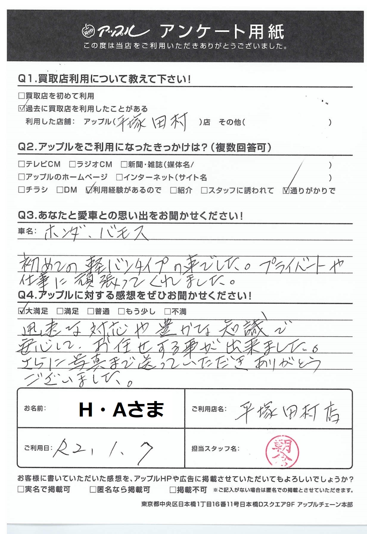 神奈川県伊勢原市 H・A様 車名:ホンダ バモス