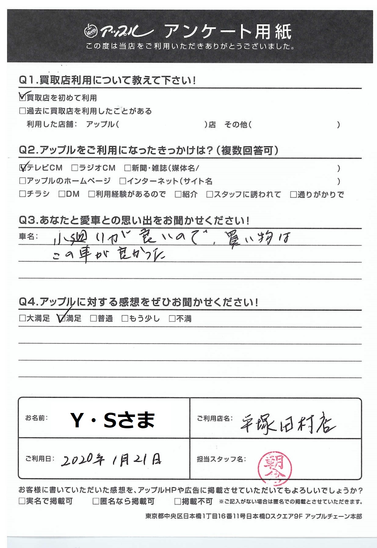 今後ともアップル平塚田村店をよろしくお願いいたします。