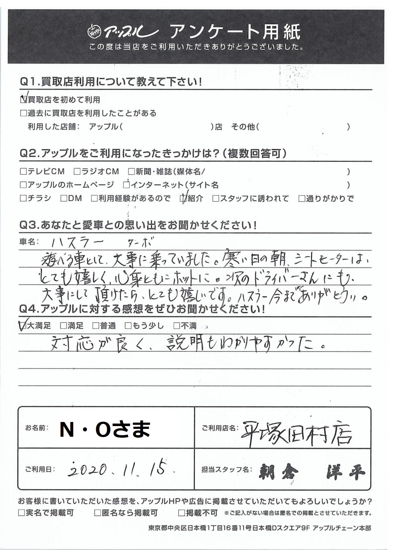また機会が御座いましたら、アップル平塚田村店をご利用下さい。