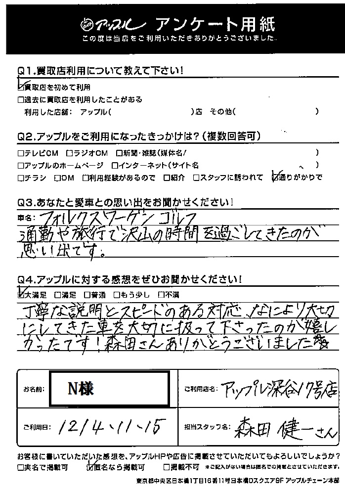 N様 車名:フォルクスワーゲン ゴルフ