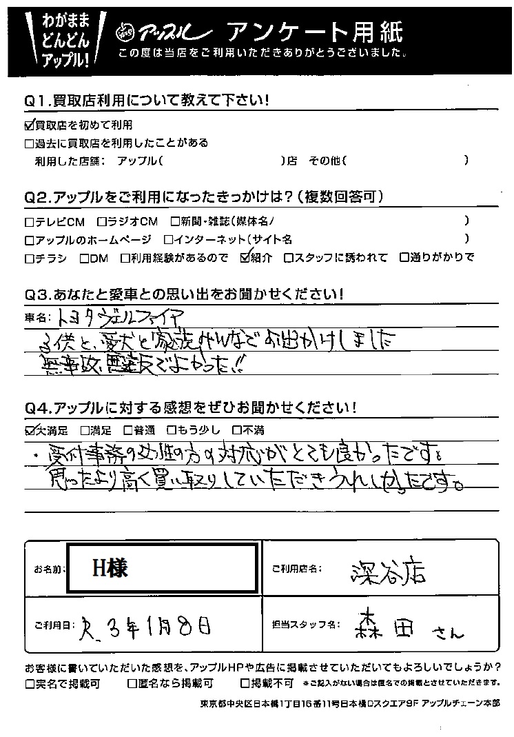 受付事務の女性の方の対応がとても良かったです。思ったより高く買い取りしていただきうれしかったです。