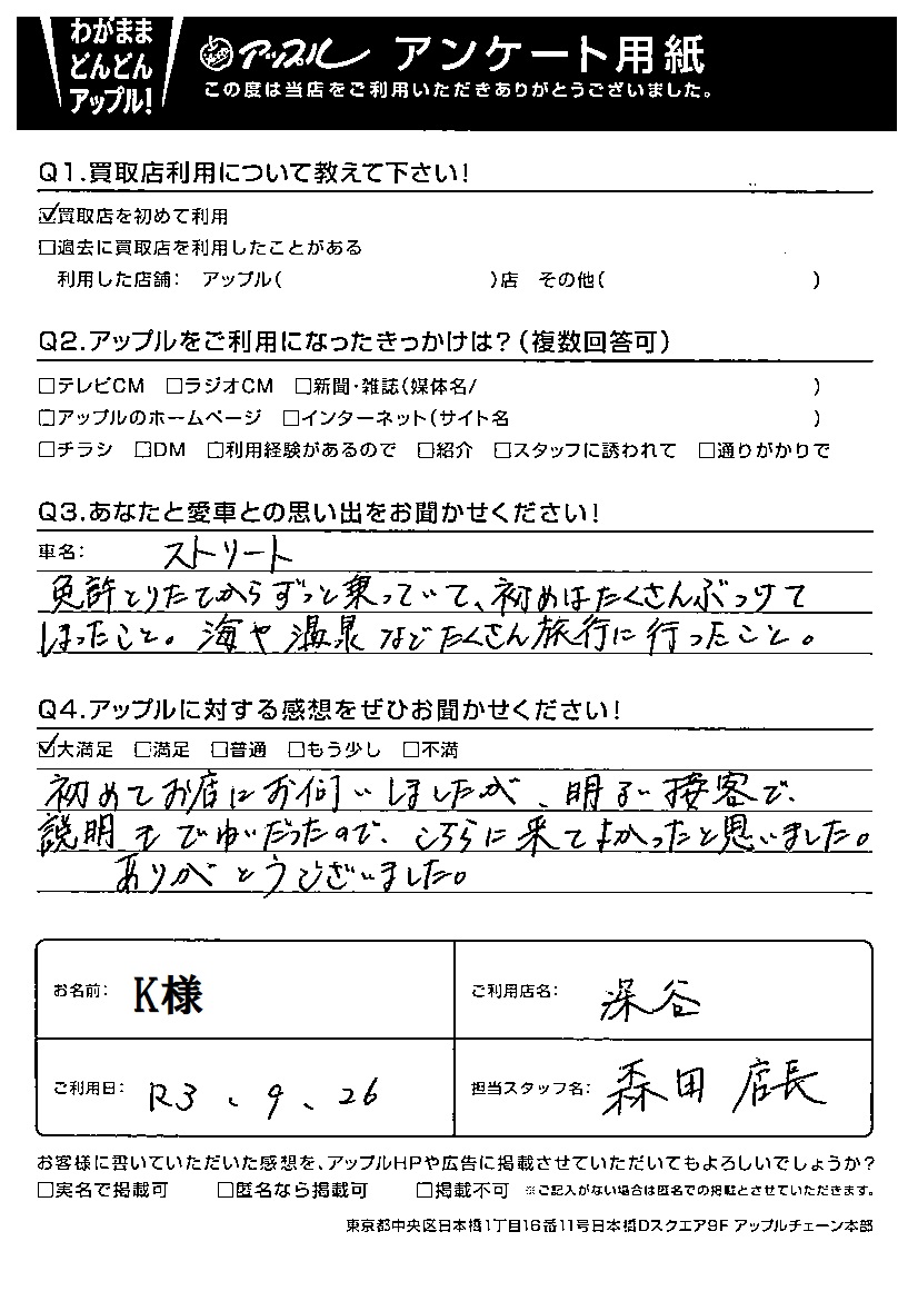 K様 車名:ホンダ ストリート
