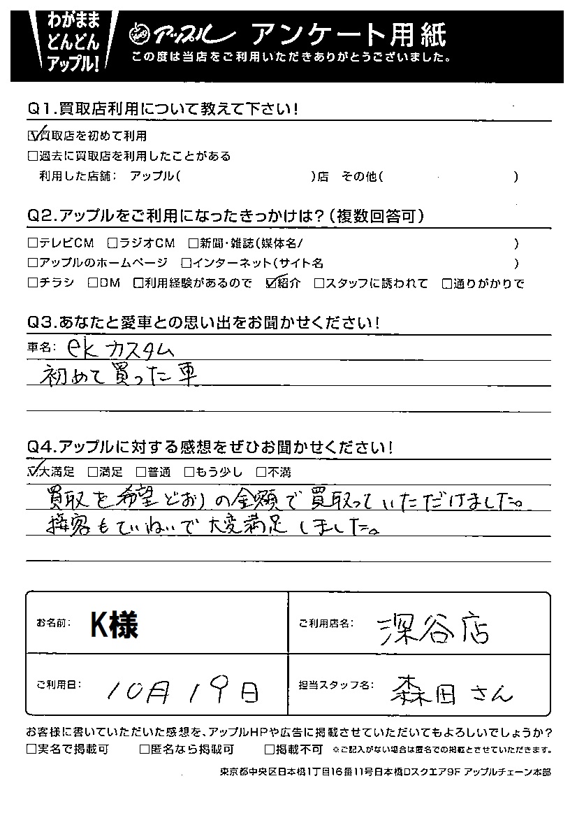 K様 車名:三菱 eKカスタム