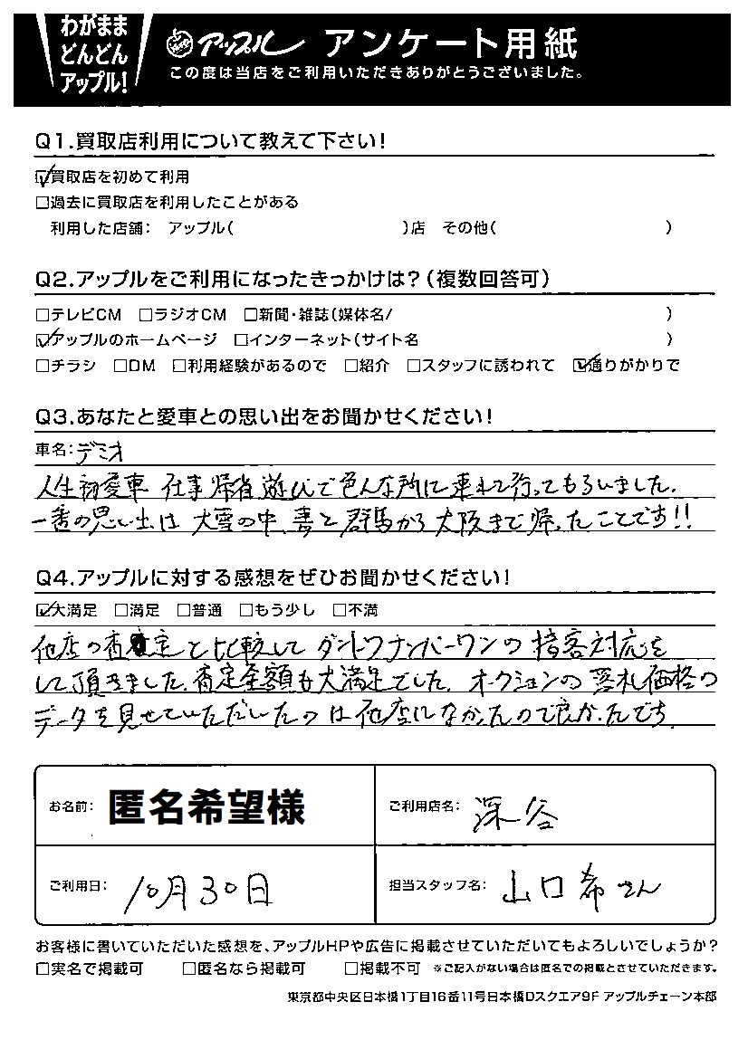 匿名希望様 車名:マツダ デミオ