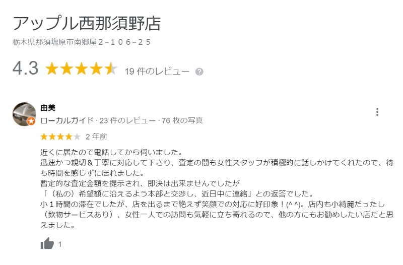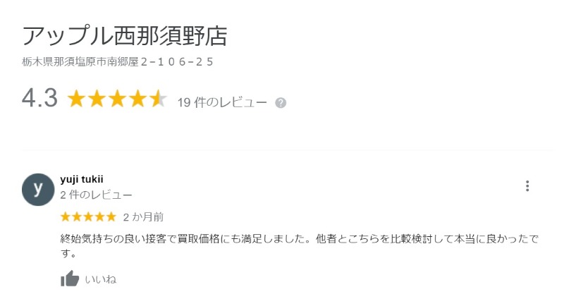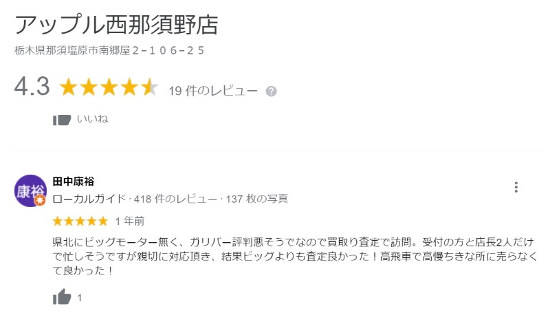 アップル西那須野店の評価にご協力をお願いいたします!