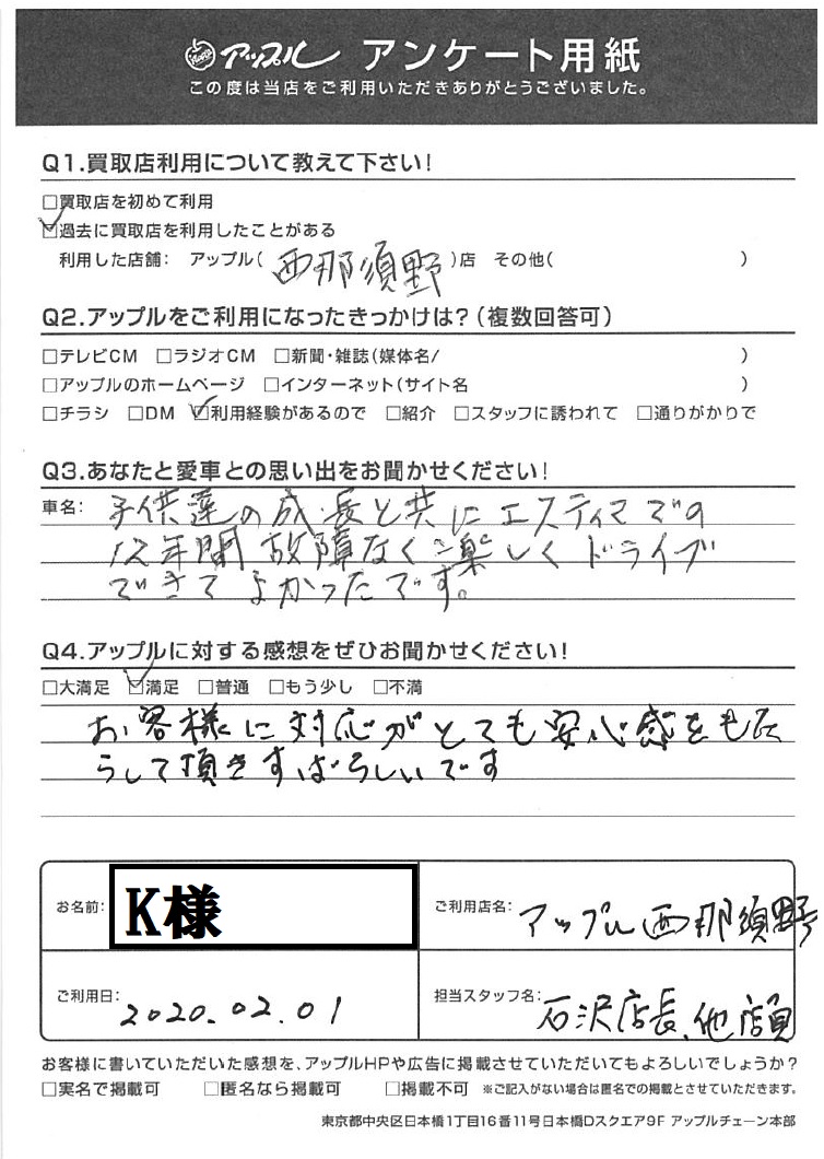 K様 車名:トヨタ エスティマ