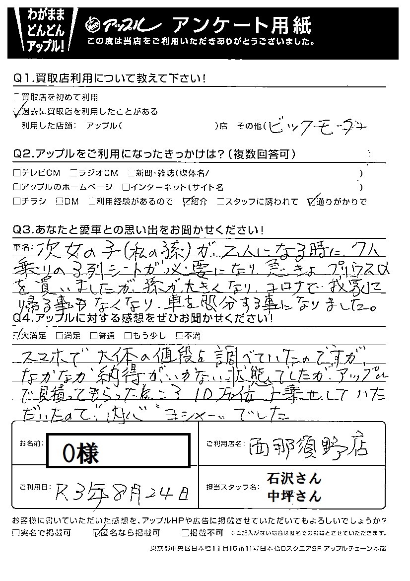 O様 車名:トヨタ プリウスα