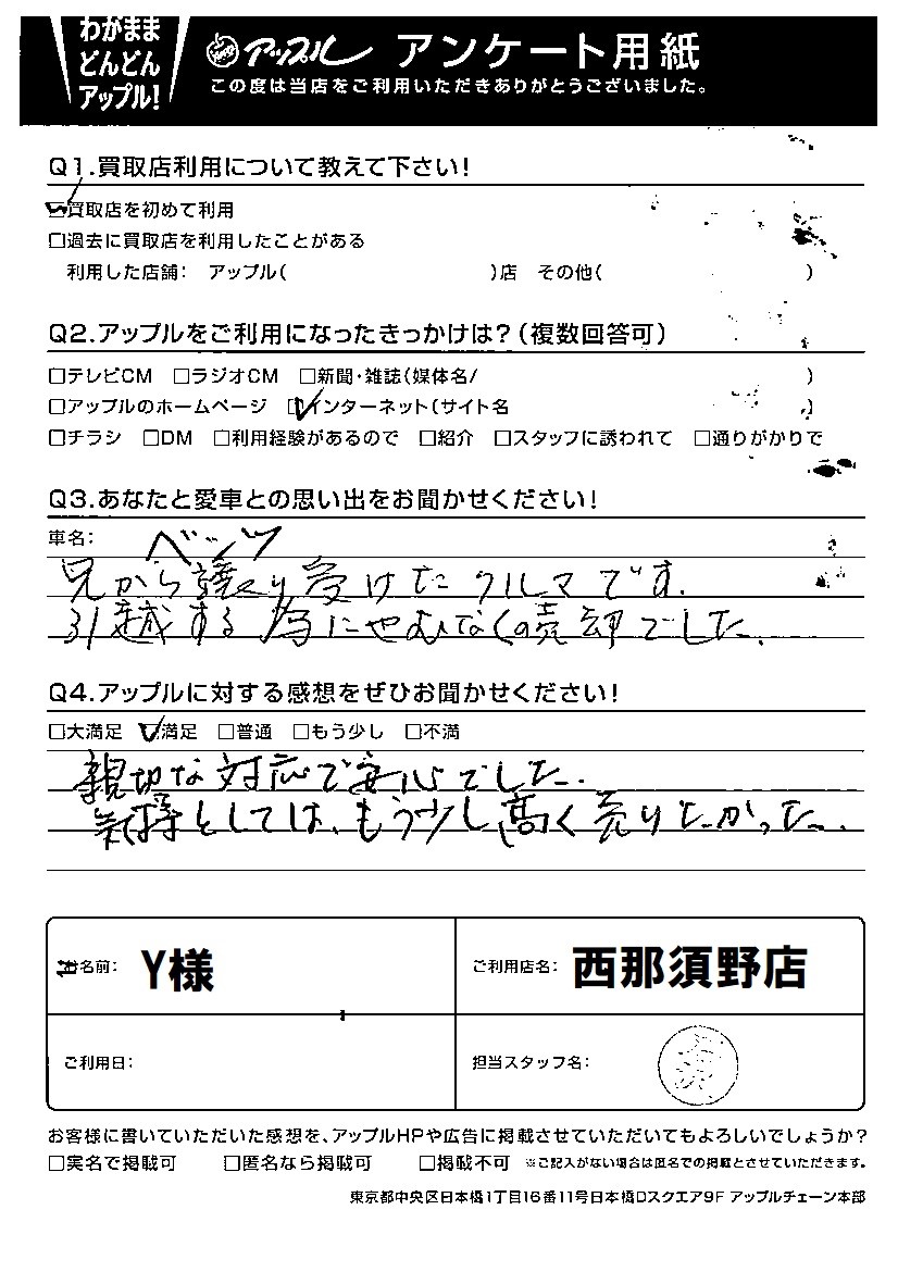 Y様 車名:メルセデス・ベンツ Eクラス(93年9月~)