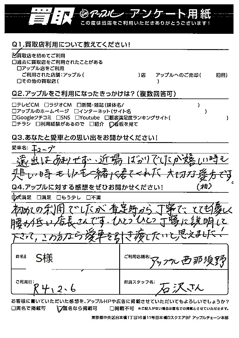 ひとつひとつ丁寧に説明して下さって、この方なら愛車を引き渡したいと思えました!