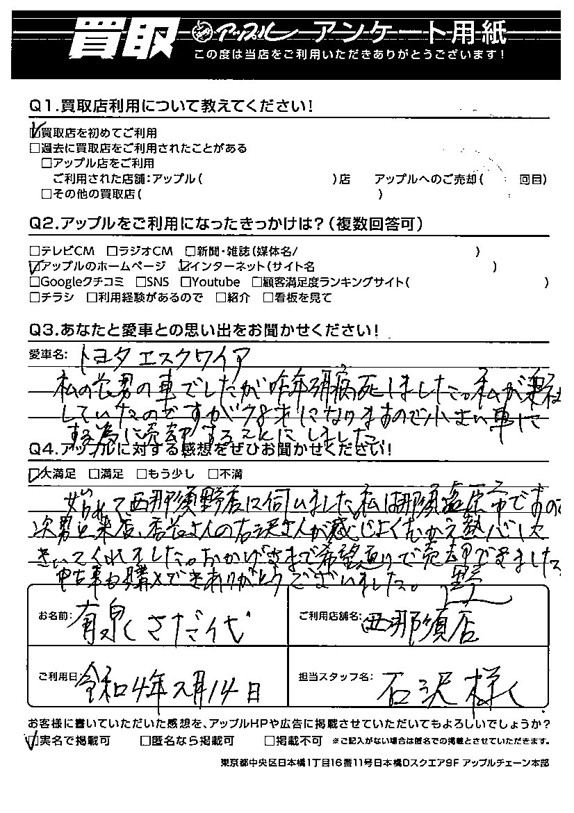感じよくむかえ熱心にきいてくれました。おかげさまで希望通りで売却できました。