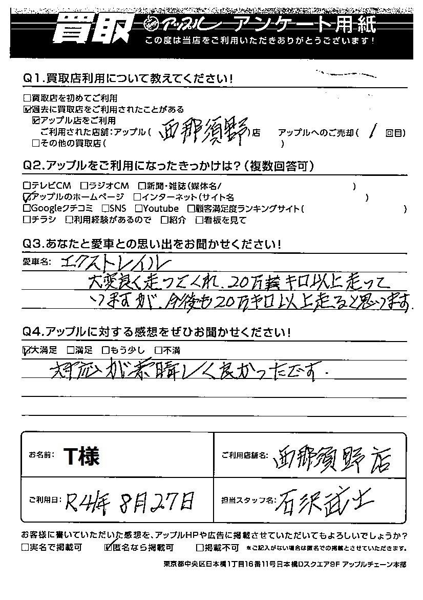 T様 車名:日産 エクストレイル