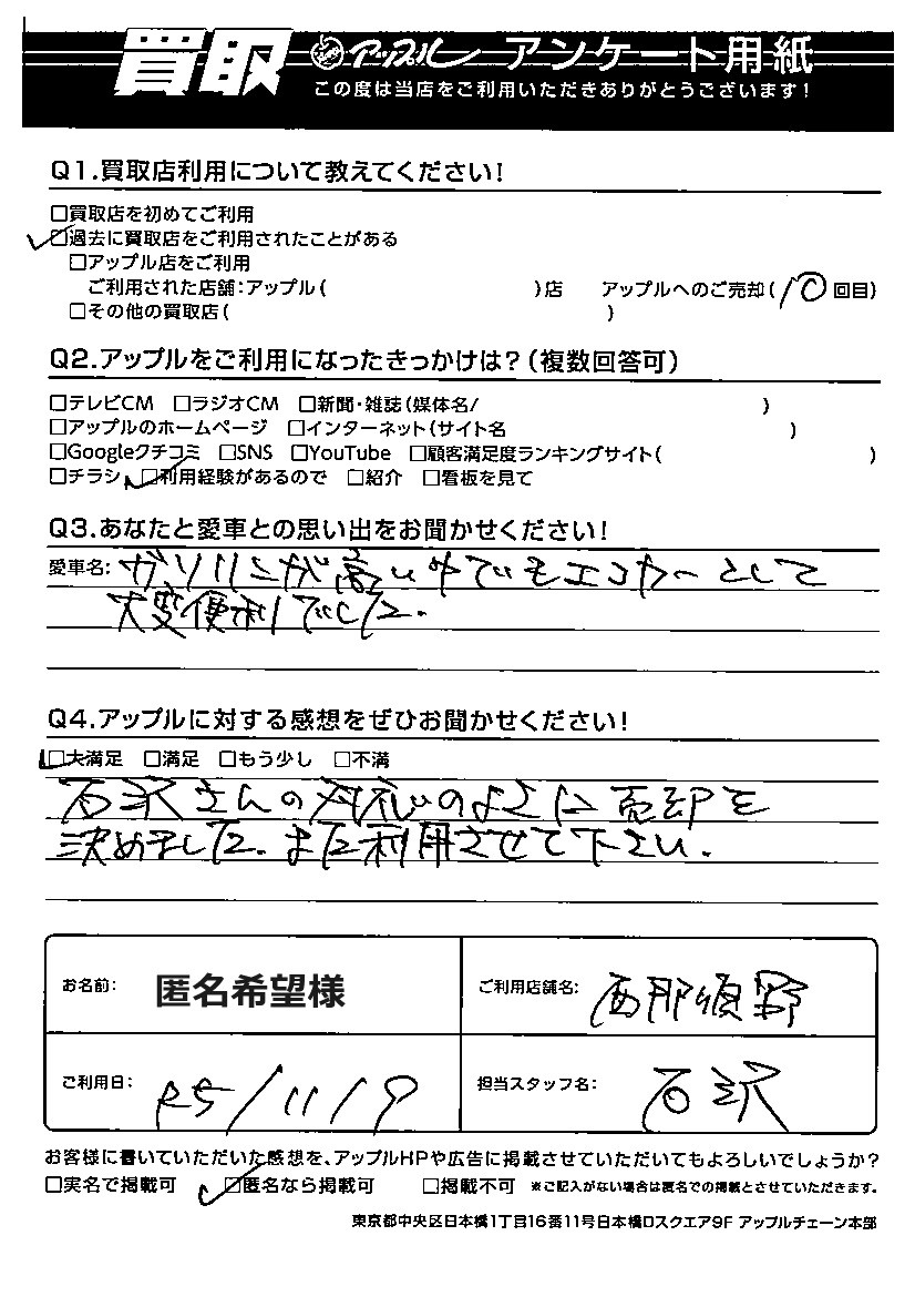 ガソリンが高い中でもエコカーとして大変便利でした。