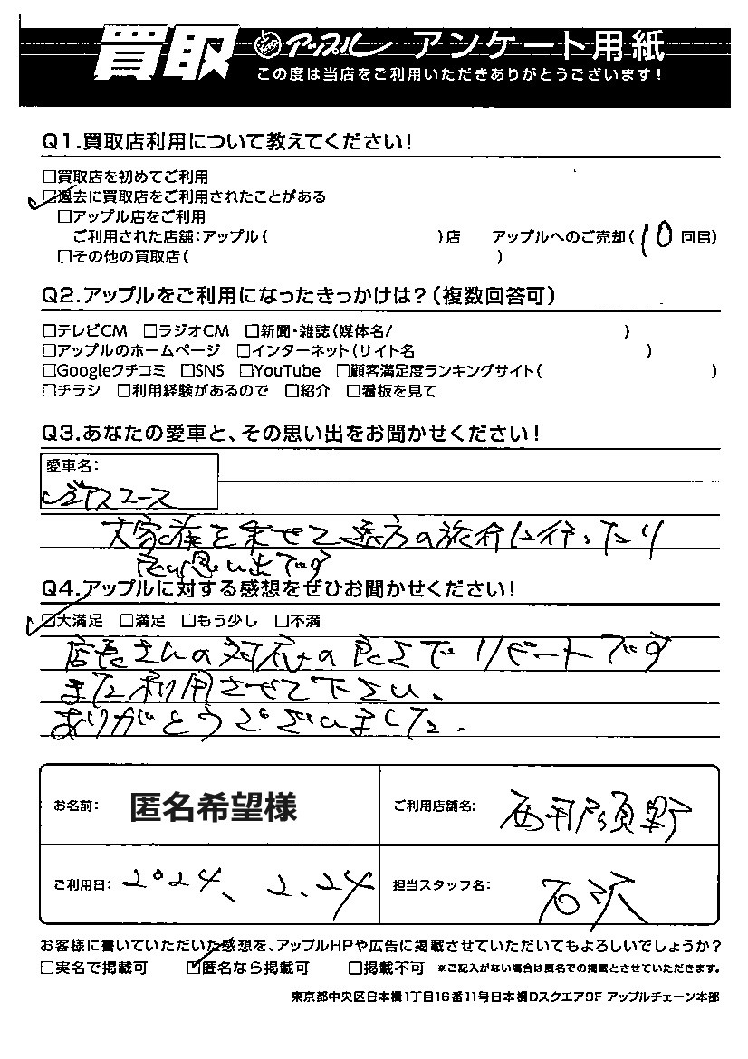 店長さんの対応の良さでリピートです。また利用させて下さい。