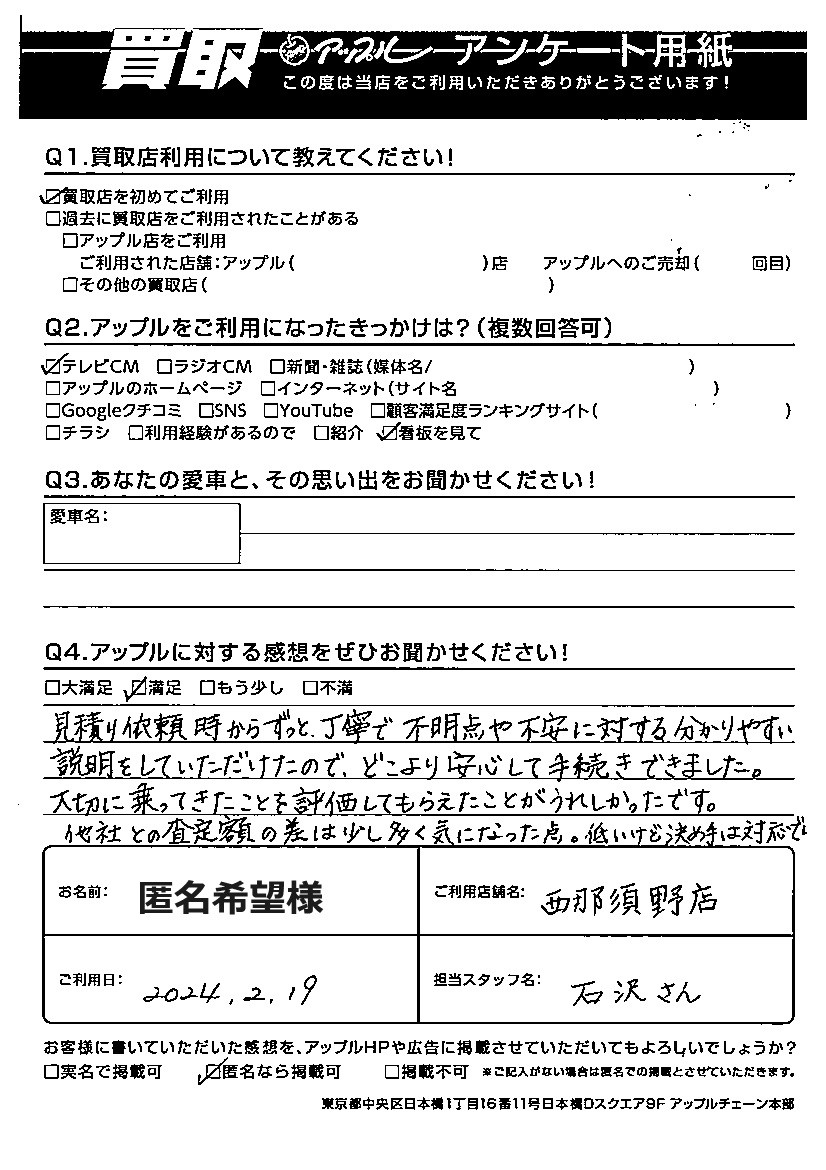他社との査定額の差は少し多く気になった点。低いけど決め手は対応で。