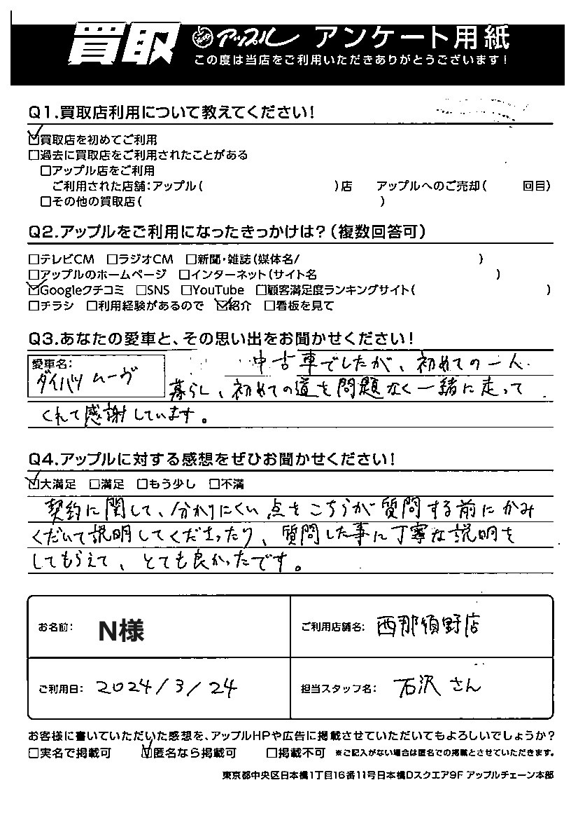 かみくだいて説明してくださったり、質問した事に丁寧な説明をしてもらえて、