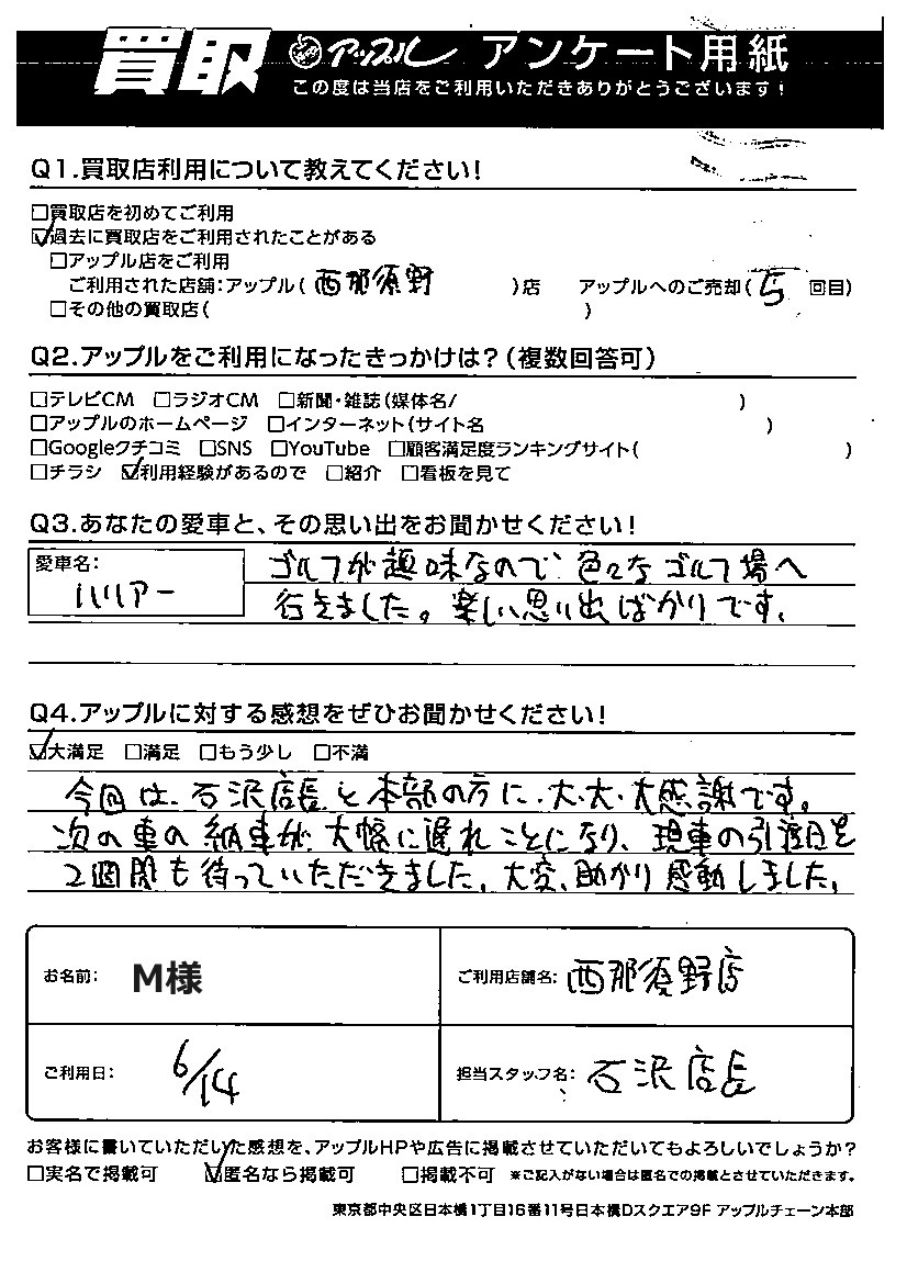 M様 車名:トヨタ ハリアー (H25年12月~のハイブリッド含む)