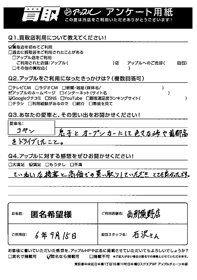 ていねいな接客と髙価での買い取りしていただきとても良かったです。