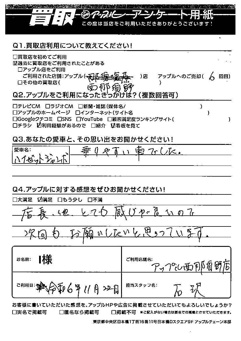 I様 車名:ダイハツ ハイゼットトラック(H11年1月~)