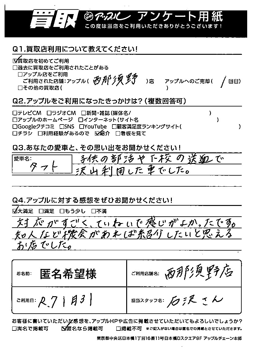 匿名希望様 車名:ダイハツ タフト