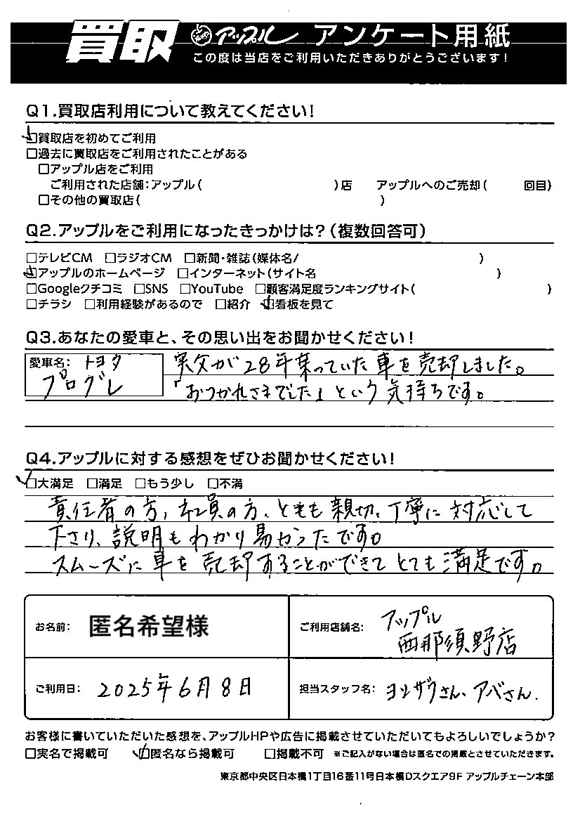匿名希望様 車名:トヨタ プログレ
