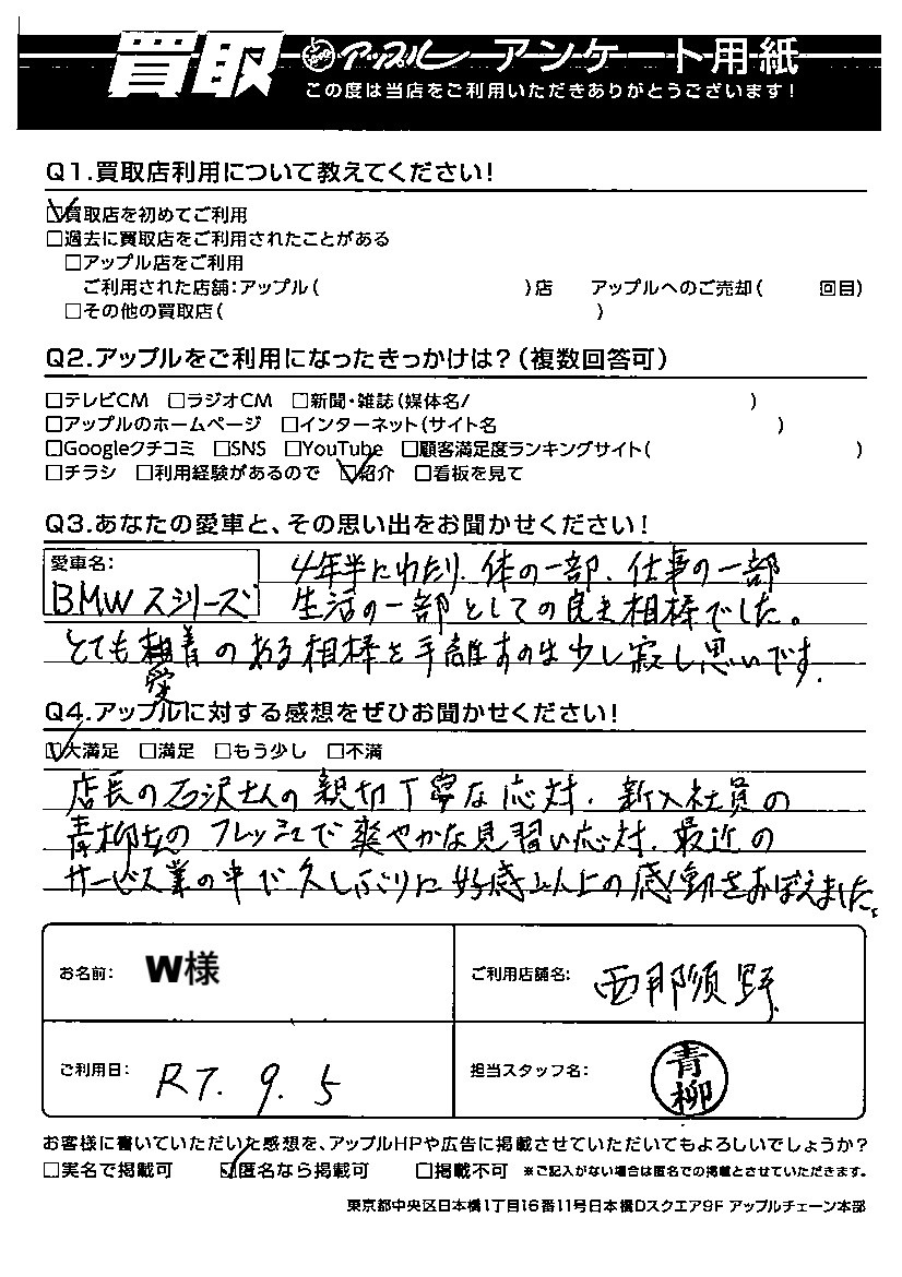 W様 車名:BMW 2シリーズグランクーペ