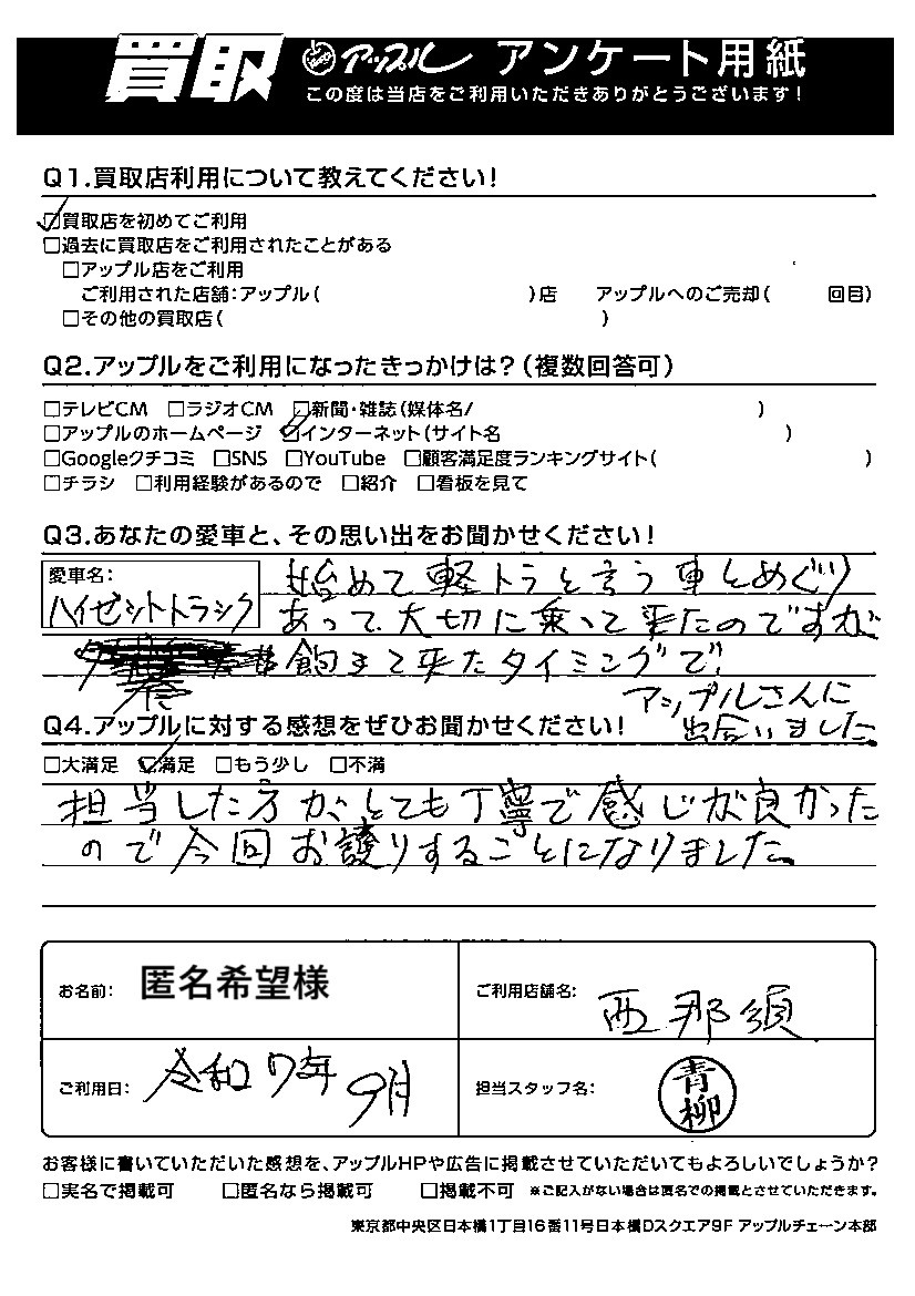 匿名希望様 車名:ダイハツ ハイゼットトラック(H11年1月~)